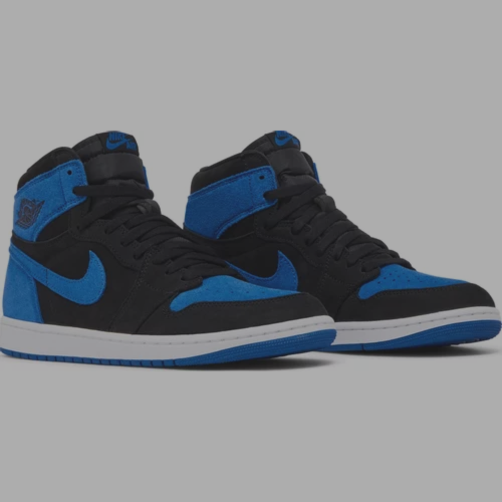 The Air Jordan 1 Retro High OG 'Royal Reimagined' features the iconic black and royal blue colorway in a premium suede construction, blending timeless design with a fresh, elevated twist.