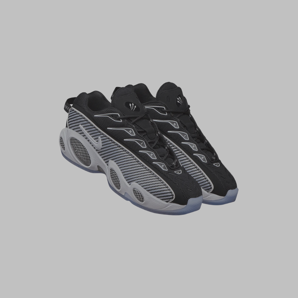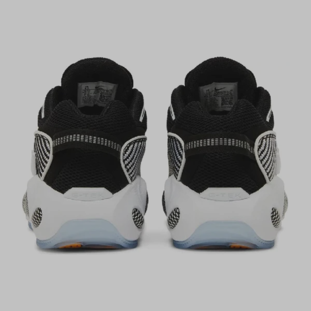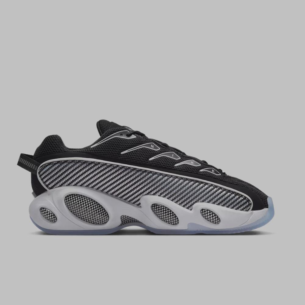 Nocta Glide 'Black White' features a breathable black mesh upper with white woven overlays, reflective accents, and carbon fiber-style panels. Finished with Zoom Air cushioning and translucent G-TEK outsole for grip and bounce.
